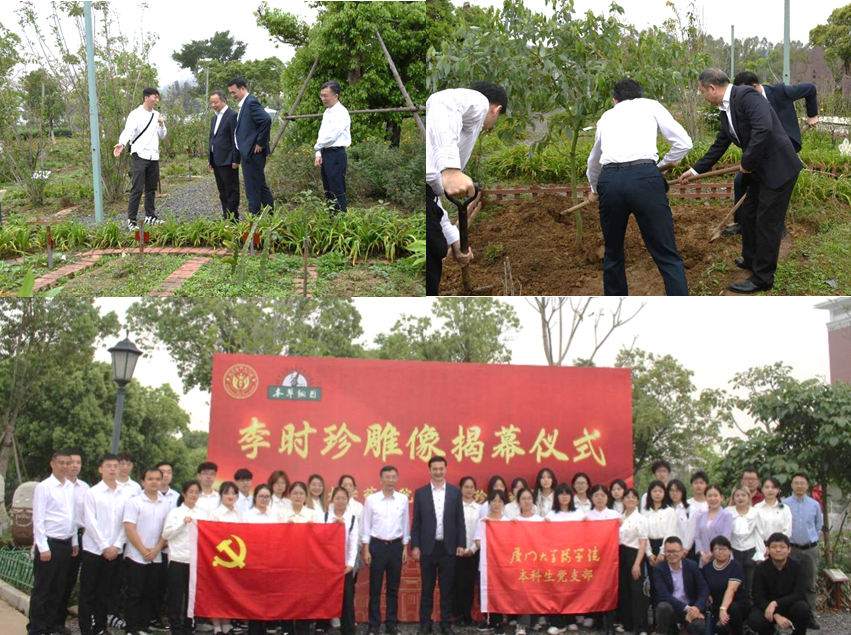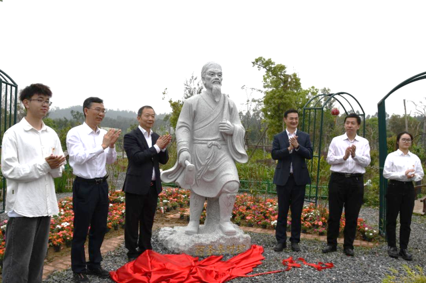 On April 2nd 2024, the ceremony for completing the statue construction of Li Shizhen, who is a renowned expert on medicinal herbs in China during the Ming Dynasty (1368-1644), was held in Fujian Garden -Pharmaceutical Garden of Xiang'an Campus Xiamen University. The attendants of this ceremony include Mr. Chen Guang (Assistant President of Xiamen University and Director of Administration Committee of Xiang’an Campus), Mr. Yang Mingjiang (President of Li Shizhen Medicine Group), Mr. Song Youliang (Secretary of the Party Committee of the School of Pharmaceutical Sciences, Xiamen University), Mr. Du Chao & Ms. Huang Minmin (Deputy Secretary of the Party Committee of the School of Pharmaceutical Sciences, Xiamen University), Prof. Chen Haifeng (Vice Dean of the School of Pharmaceutical Sciences, Xiamen University), and the student representatives from the Undergraduate Party Branch as well as Zhao-Hua-Xi-Shi Club.