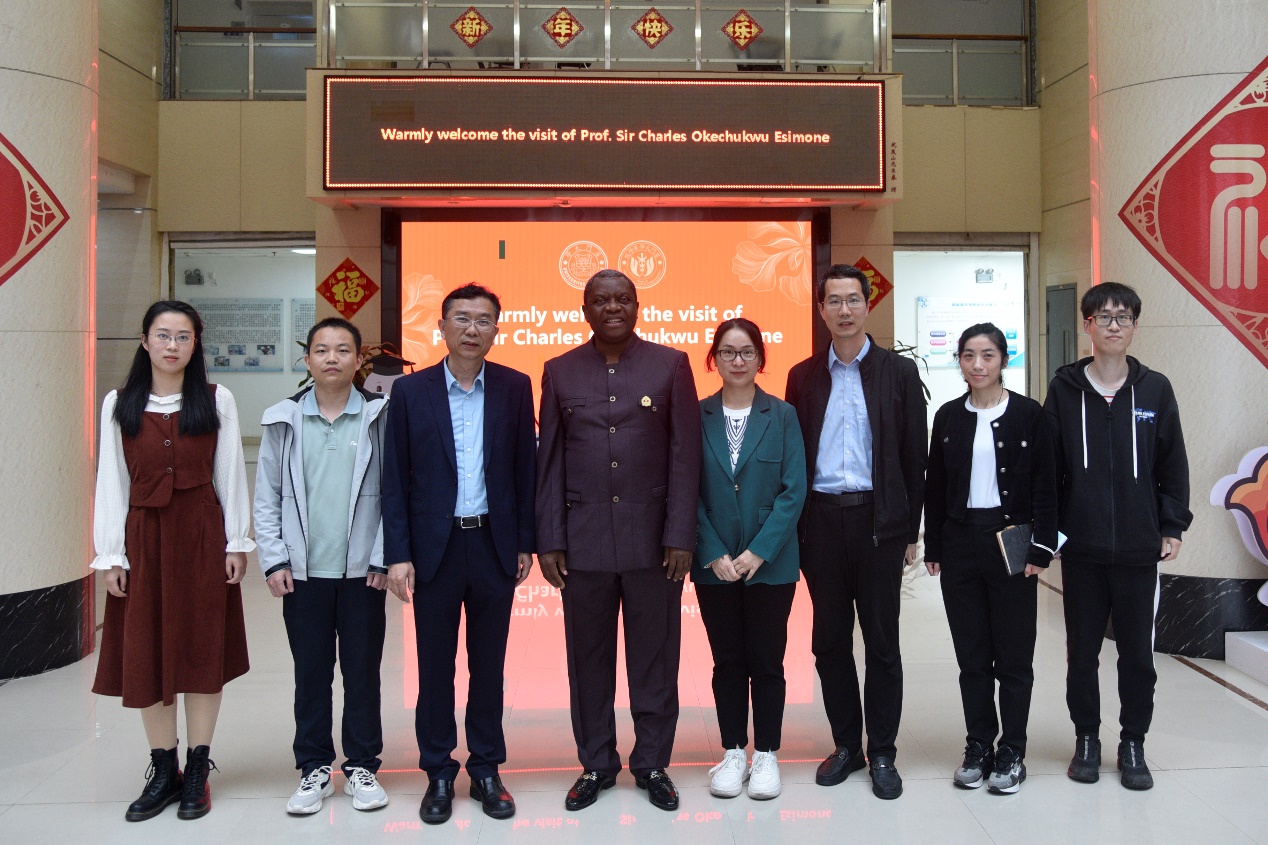 On April 6th, 2023, the President of Nnamdi Azikiwe University in Nigeria, Prof. Sir Charles Okechukwu Esimone, visited our school. The Secretary of the Party Committee, Youliang Song, and the Vice Dean, Yunlong Wu, and faculty members attended the meeting and conversation. The Vice Dean (in charge of school), Prof. Wen Liu, attended the President's meeting held on April 5th 2023 at the Siming Campus. Thanks to this meeting, both sides enhanced understanding and expressed the desire for future scientific research cooperation.